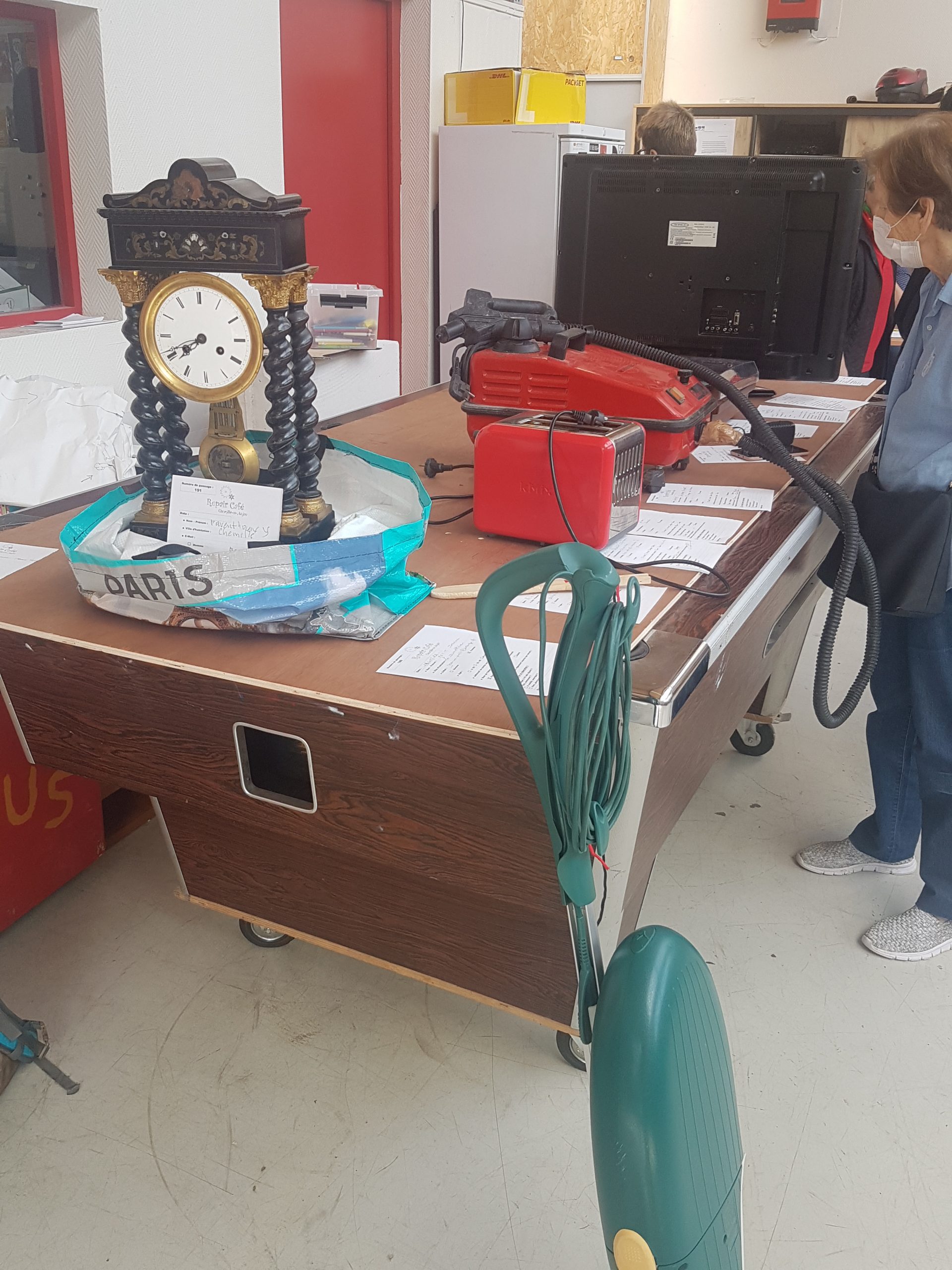Parmi les objets que nos bénévoles ont vus passer, il y a eu : une plaque à induction, une vieille horloge, un aspirateur, deux télés, deux vélos, etc.