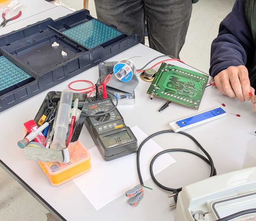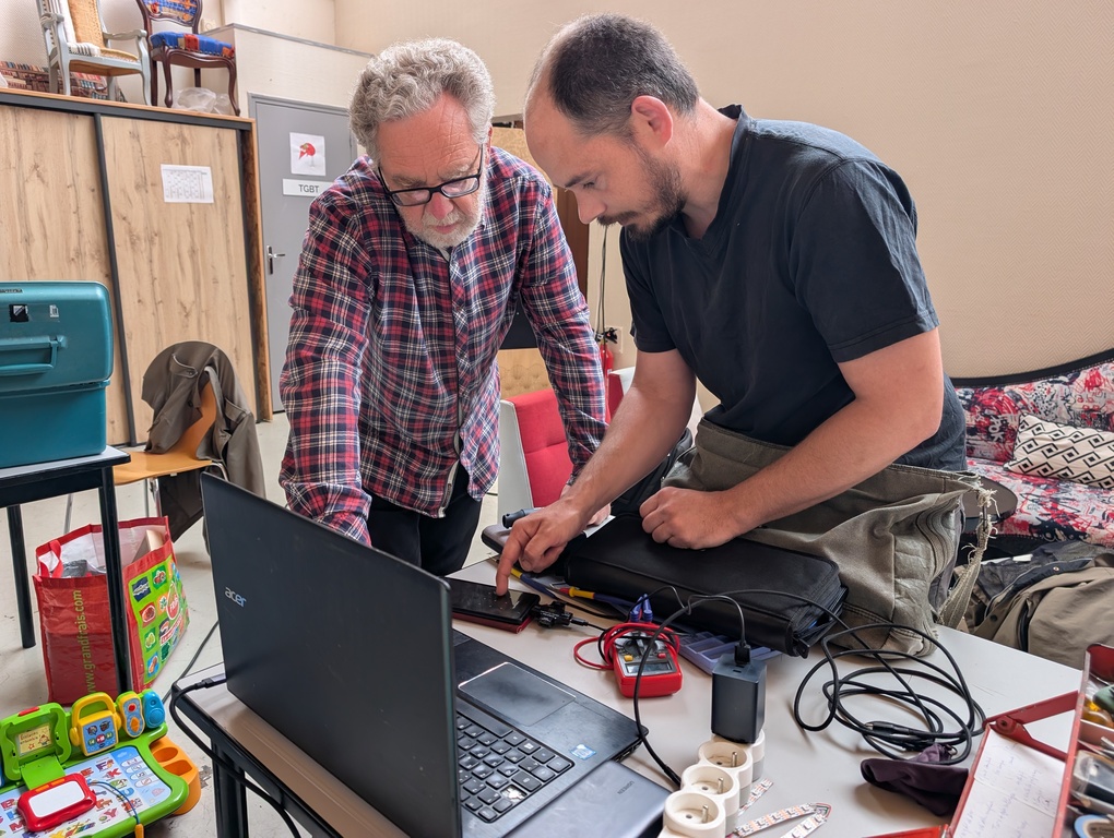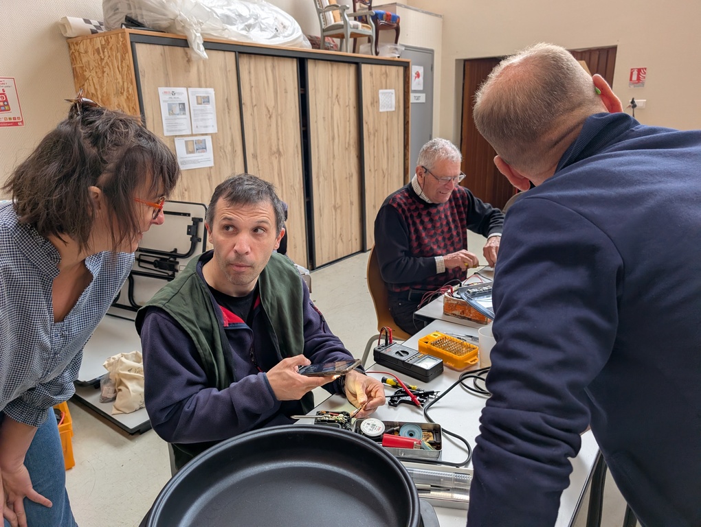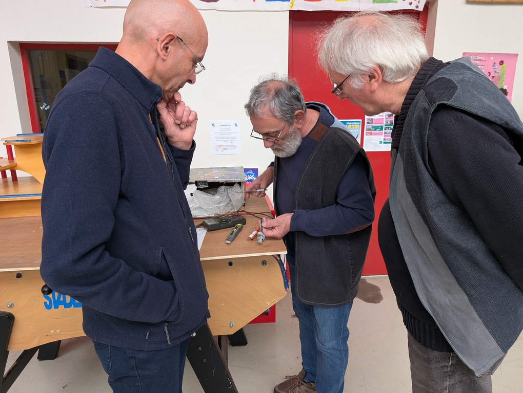 À côté du textile, on a aussi réparé un smartphone, un robot mixeur, un aspirateur, un destructeur de documents et un jeu de société. Ce dernier venait de la ludothèque de Chemillé — une collaboration qu’on espère voir se répéter : le jeu Touché-Coulé est reparti fonctionnel après nettoyage des pistes de contact.